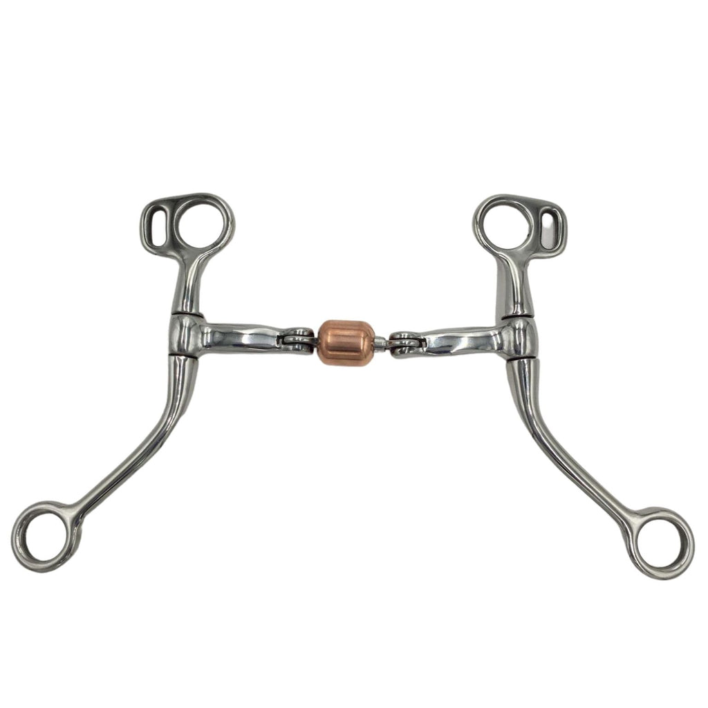 This is a great training bit. Made of stainless stell it has a "Super Hinged" 5" mouth that has a copper roller. Designed to provide an easy way for the horse to feel a response before actual rein cue comes. A good everyday bit as well.