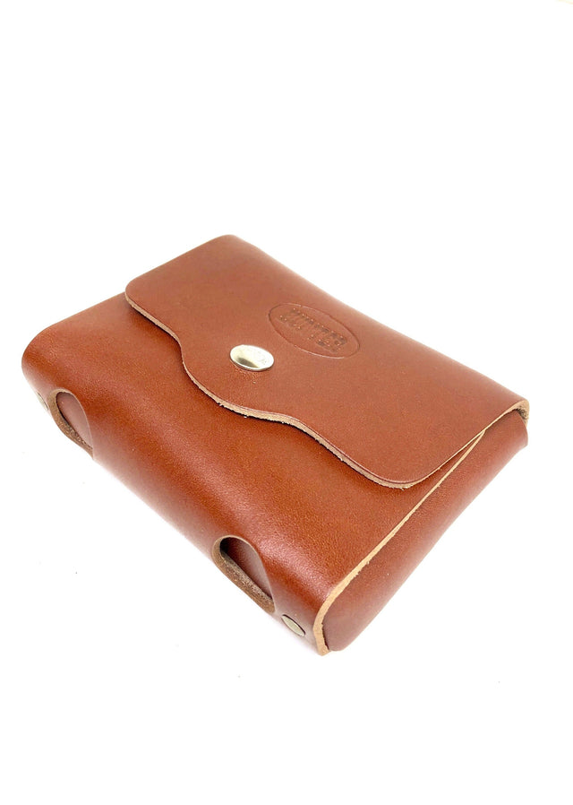 Hunter's American Full-Grain Leather Rifle Cartridge Box carries 20 rounds with a strong plastic insert and fits belt loops up to 2" wide with snap closure. The Leather Cartridge Box is available in chestnut tan with durable nylon stitching.