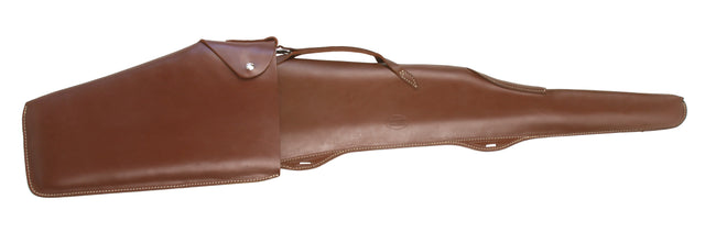 These full-length leather scabbards fits Scoped Rifles 26" only. Comes with a full hood secured with a leather strap and buckle and incorporates a built-in leather handle. Scabbard straps are included.