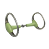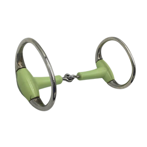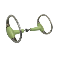 2 3/4" Stainless Steel Rings with a 5" soft, flexible, and extremely durable, apple flavored mouth that encourages acceptance and softness. The Eggbutt cheeks help in keeping the bit secure in the horse's mouth and are great for all disciplines