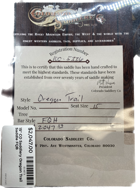 Sale price $2,826.92 USD Regular price $2,882.30Unit price /Unavailable Colorado Saddlery