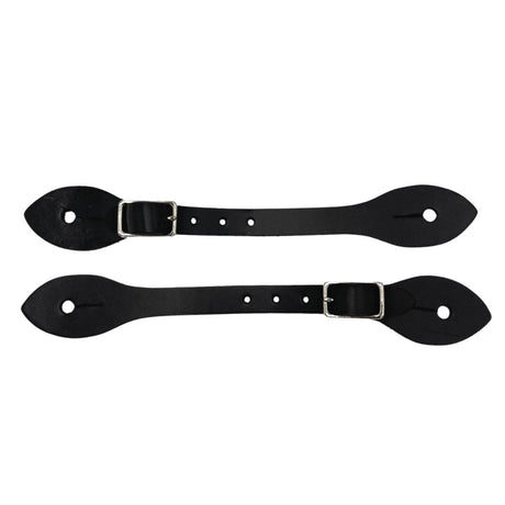 Black Leather Spur Straps with Rawhide Tips and Contrasting Stitch
