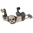 These black steel bumper spurs are sure to attract attention! With heavy wire bumpers and two 1/2" rosebud rowels they make cueing easy and with the the rowels can be used on the turn. Swinging nickle plate buttons.