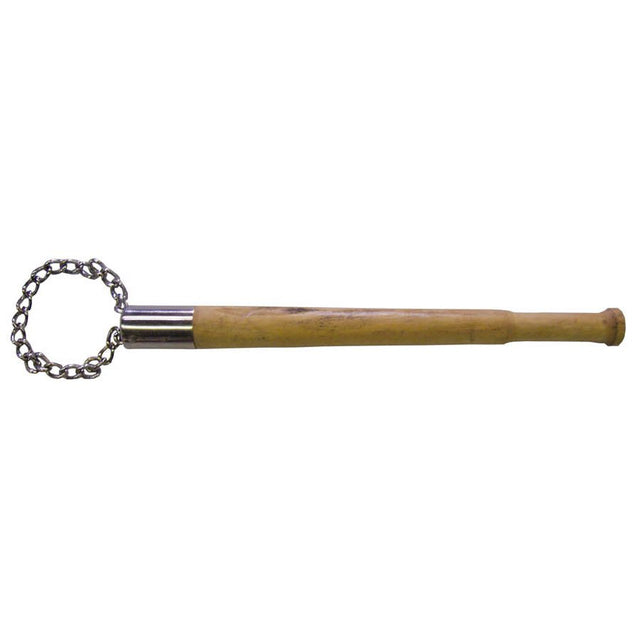 Este mosquetón tiene una cadena resistente con un mango de madera dura de 27". Solo los jinetes con experiencia deben usarlo.