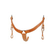 Cuero de silla de montar grueso, doblado y cosido, con pechera forrada de cuero. 5 cm de ancho con correa de amarre que se estrecha de 5 cm a 19 cm. Presilla central de acero inoxidable y presillas laterales niqueladas. Estampado a juego con nuestras sillas de montar. Engrasado a mano en nuestro hermoso color "Colorado Gold".