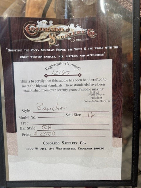 Muy poca disponibilidad (1 unidad)Precio normal $2,764.50 USDPrecio unitario /AgotadoColorado Saddlery
