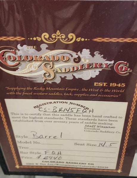 Muy poca disponibilidad (1 unidad)Precio normal $3,391.50 USDPrecio unitario /AgotadoColorado Saddlery