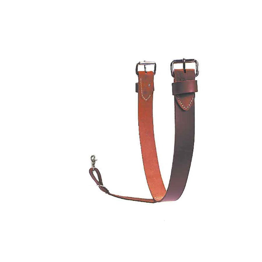 Esta cincha de flanco está hecha de cuero de faldón pesado de una sola capa y mide 1 3/4" x 33". Viene con herrajes niquelados y una correa de conexión de cincha cosida.