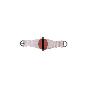 Cincha de cuerda de rayón de 27 hebras con barra central de cuero y herrajes niquelados.