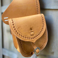 Estas hermosas alforjas Natural Saddle están hechas de cuero de alta calidad. Ya sea que salgas a dar un paseo por el campo o a recorrer las hermosas Montañas Rocosas, estas alforjas están listas para que las abroches a tu sillín y guardes tus pertenencias.