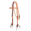Esta cabezada está hecha de un hermoso cuero de faldón de 19 mm, doblado y cosido. Aceitada a mano en nuestro hermoso y rico color Oro Colorado, con una cesta estampada a juego con el resto de su aparejo y silla de montar. ¡Un auténtico look western!