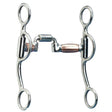 Bocado de bordón plano, finamente equilibrado, con flexión de 5 vías y carrilleras de acero inoxidable de 6 3/4" y 4 riendas. Bocado de bordón plano "sin pinzamiento" de 5" con rodillos de cobre. Este bocado proporciona un apalancamiento medio y está diseñado para brindar al jinete diversas maneras de flexionar al caballo.