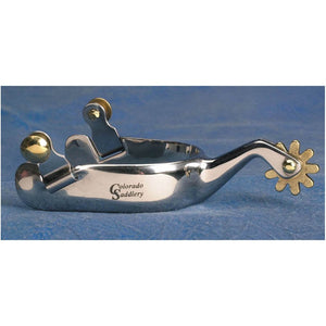 Estas espuelas para dama, más pesadas y con una banda más grande, están bien hechas y soportan el trabajo más duro. Espuela de acero inoxidable con banda de 11/16". Espuelas de latón de 5/8".