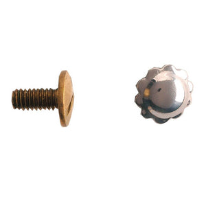 Hermosos puntos festoneados de alpaca de 19 mm (3/4"). Ideales para el ajuste de bridas o cabestros. Tienen un tornillo de 6 mm (1/4") de largo y un poste de 9 mm (3/8").