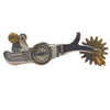 Esta espuela con el logotipo de Colorado Saddlery, de acero inoxidable, combina estilo con la calidad. El logotipo de Colorado Saddlery se encuentra en una concha de alpaca grabada con un borde de cuerda de latón macizo. Las espuelas, los botones y los cascabeles son de latón. ¡Una espuela verdaderamente única y hermosa!