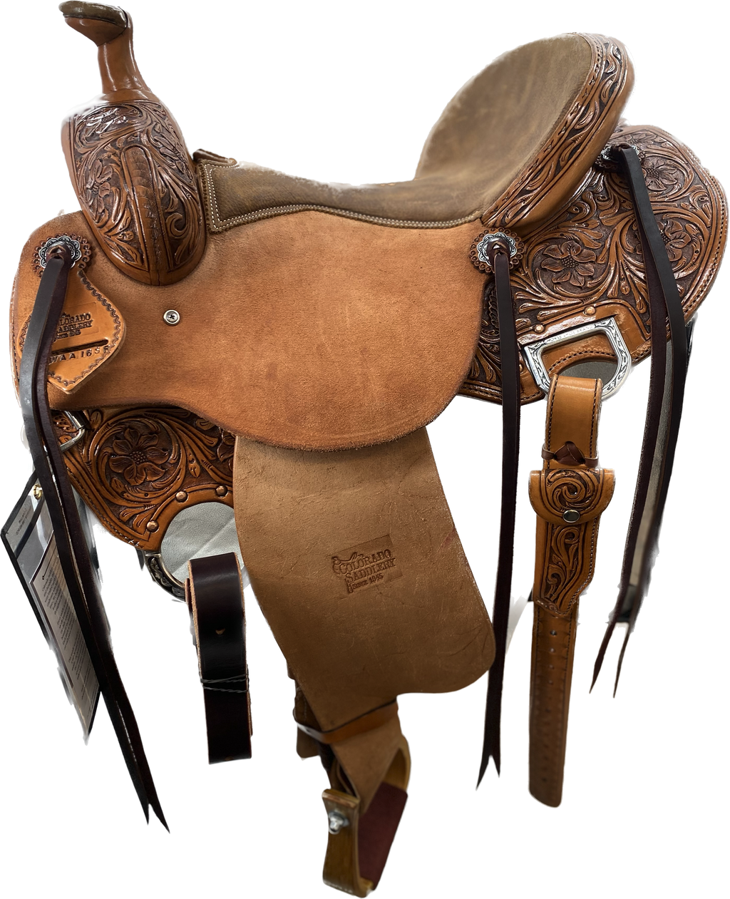 Esta silla está lista para todas sus necesidades de ganadería y lazada.