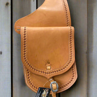 These beautiful Natural Saddle bags are made of high quality leather. Whether you are going out just for a trail ride or hitting up the beautiful Rocky Mountains these bags are ready for you to attach them to your saddle to hold your belongings.
