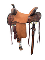 Leather: Roughout in medium oil on seat and jockeys; Antiqued sunflower tooling