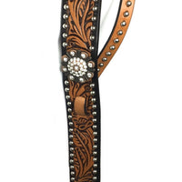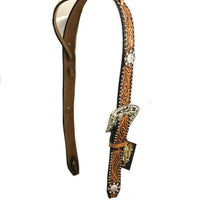 Beautiful adjustable hand tooled belt headstall with the intention to stand out! It has a non-slip suede lining allowing comfort and durability for your everyday riding. The one ear strap provides flexibility to switch between multiple horses.