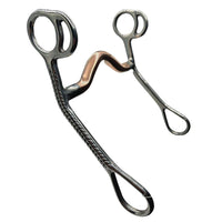 A nice, light bit with a 5" copper mouth with a medium port. The copper mouth tastes sweet and keeps the mouth moist. 7" stainless steel cheeks with rope design engraved cheeks.. This bit is a good all around bit with medium leverage and can be used for everyday riding.