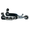 A unique and great looking spur! The Diamond Back has a 3/4" shaped band that has a 3 snake nickel silver overlay with swinging buttons and a 2 1/2" snake head shank with a 1 1/2" 10 point rowel.