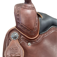 The Rocky Mountain Western Dressage Saddle is expertly crafted for riders who demand precision, balance, and comfort in the arena. Designed to blend the elegance of dressage with the practicality of Western riding, this saddle provides a deep, secure seat and close-contact feel for effective communication with your horse. Whether you're training or competing, this saddle delivers the support and style needed for Western dressage success.