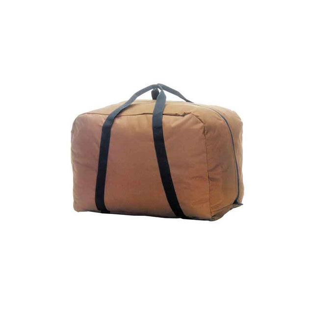Heavy, high quality cordura. Securely bound and reinforced with heavy webbing. Extra heavy rust resistant full length zipper. Bottom and lower half of bag are padded and reinforced. Heavy web carrying straps extend completely around bag.
