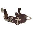 These great looking antique brown bumper spurs with nickel silver overlay are designed to be balanced on the boot with forward lean buttons for extra comfort. The heavy wire cue is easy to use without being severe.