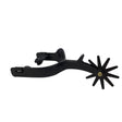 An old time style that has been used for over a hundred years. It fits a boot well and can communicate quickly with a horse. A black steel, southwestern style spur with chap guard. 2 1/4" 10 point, black rowels with brass rowel pins.