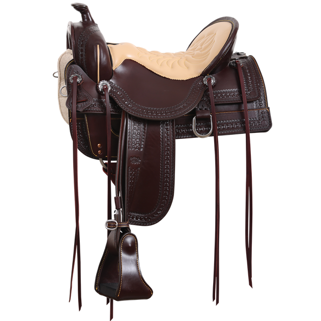 Tucker's Heritage series of saddles are taking a step back in time to the original Tucker design! The double square skirting, stirrup leathers over the fenders and old west border tooling are as classic as western style can get, complimented by the timeless Jeremiah Watt hardware! Perfect for the rider that loves plenty of back support with a 5" cantle, with wider western fenders to protect your legs from sweat, and an old-school in-skirt dropped western rigging that eliminates any interference with your seat!